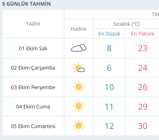 İl genelinde beklenen serin ve yağışlı sistemin etkisiyle hava sıcaklıklarının 6 ile 8 derece düşeceği tahmin ediliyor.