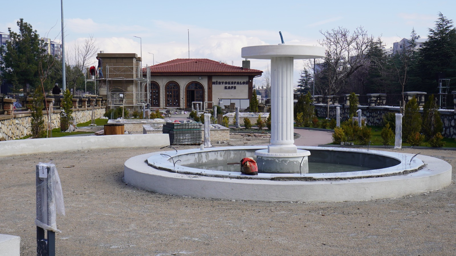 Ekipler, bir yandan bahçe ve giriş alanında düzenlemeler yaparken, diğer yandan kafenin yanında yer alacak otopark için kilit parke taşları döşüyor. Çalışmaların tamamlanmasıyla birlikte alanın hem estetik hem de işlevsel bir görünüme kavuşması hedefleniyor.